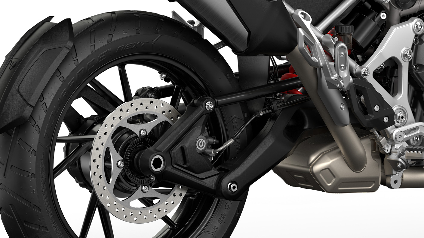 Благодаря Т-образному коленвалу и порядку вспышек в цилиндрах 1-3-2 уникальный трехцилиндровый двигатель демонстрирует выразительный характер и отличную отдачу на низах как у 2-цилиндрового рядного мотора и все яркие преимущества трипла на высоких оборотах.