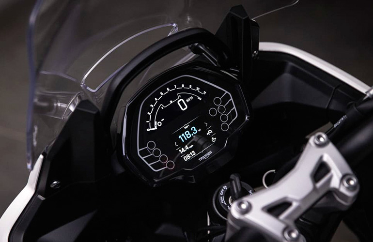 Приборная панель представляет собой полноцветный TFT-дисплей, который оснащен модулем Bluetooth с фирменной системой My Triumph. Она позволяет передавать на экран указания навигации, а также управлять телефоном и музыкой. Управление интуитивное, не отрывая взгляда от дороги, при помощи пульта на руле. Современный дисплей обеспечивает легкость чтения и быстрый доступ ко всей важной информации о поездке.