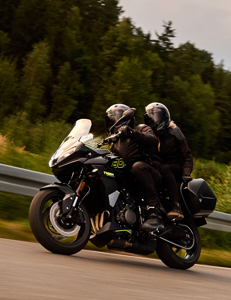 За рулем Tiger Sport 800 многокилометровые поездки даются с легкостью! Его геометрия шасси и эргономика разработаны в том числе и с прицелом на дальнобой. Расположение водителя между рулем, сиденьем и подножками тщательно выверенно для достижения максимального комфорта и контроля. Посадка прямая и удобная, а сиденье отличается уникальным профилем и специальной набивкой для оптимальной поддержки как водителя, так и пассажира. Причем место для «второго номера» оснащено встроенными ручками для дополнительной безопасности и комфорта.