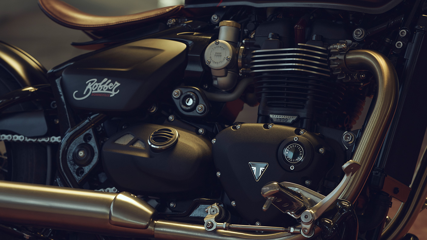 К изящной аутентичности и выразительному стайлингу привычного образа заводского боббера Triumph добавились брутальность и строгость за счет зачернения многих узлов мотоцикла. Это в том числе боковые моторные крышки, крышки распредвала и звездочки с черным порошковым покрытием. Новый образ под стать его улучшенным характеристикам – Bobbeville Bobber ездит также круто, как и выглядит!