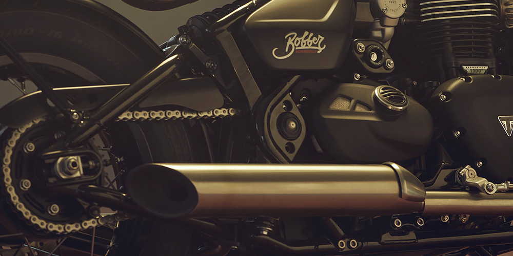 Глушители с косым срезом из шлифованной нержавейки выглядят стильно и дарят глубокий, насыщенный рокот на холостых и яркие потрескивания при сбросе газа — это фирменный саунд Bobber.