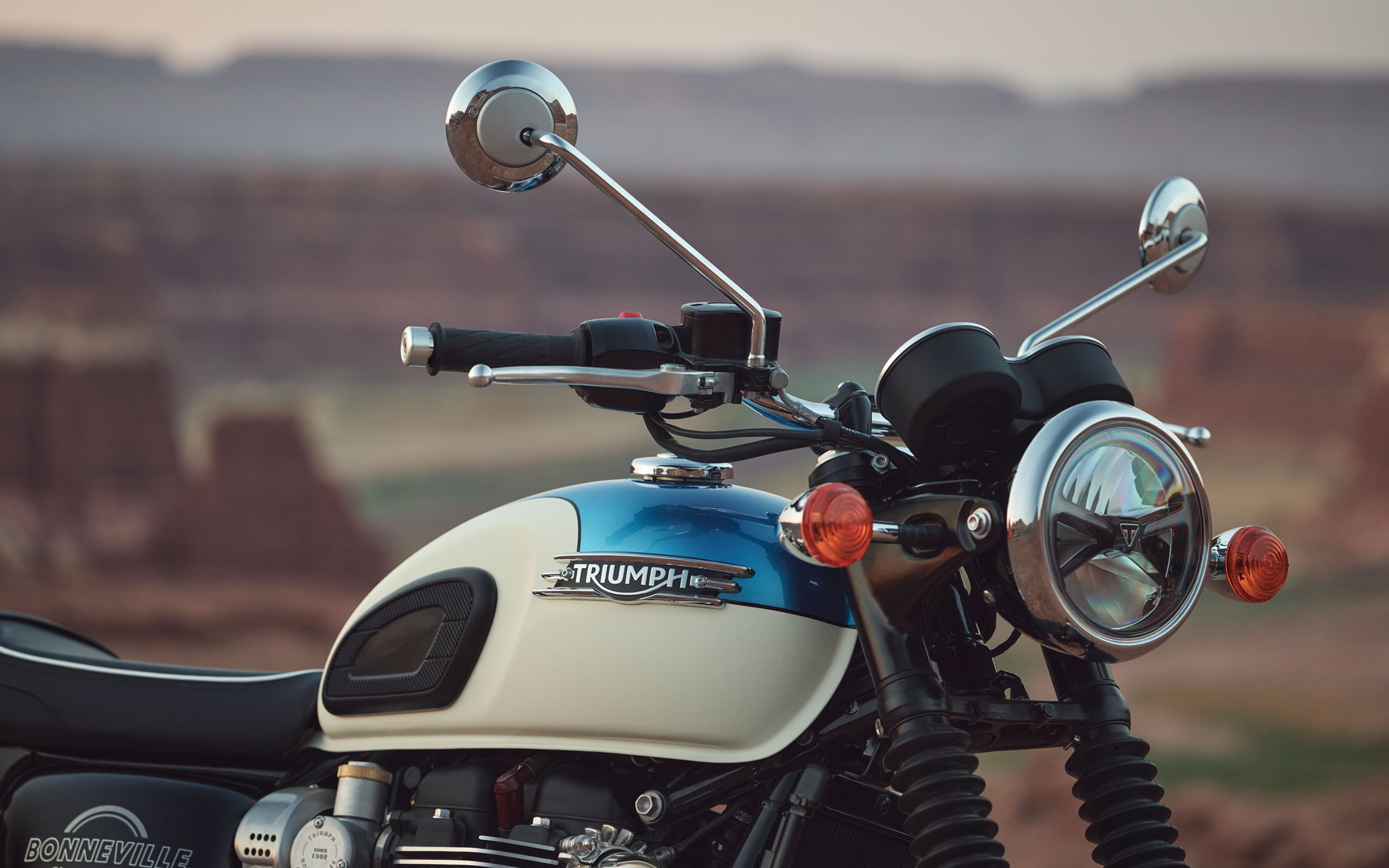 Классическая схема шасси с энергоемкими элементами подвески всегда считалась отличительной особенностью Bonneville. Она сочетает в себе легкость и уверенность в управлении, расслабленную посадку благодаря выверенной геометрии сиденья (высота 790 мм) и проработанную годами эргономику.