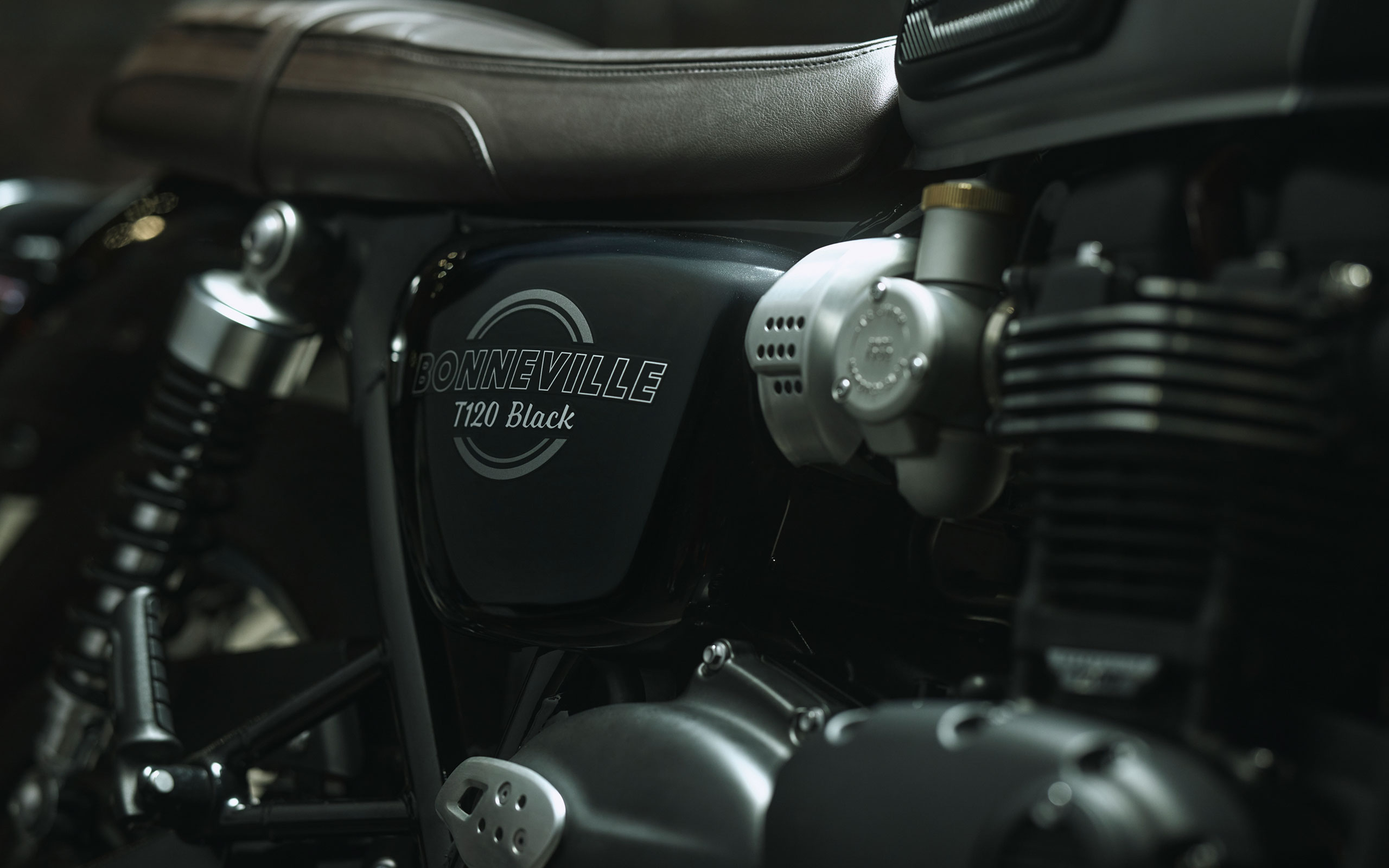 Солидность, внушительность и утонченность – именно так можно характеризовать стайлинг T120 Black с его радикально затемненной отделкой всего и вся: от силового агрегата до выпускной системы с изящными глушителя и колесными дисками.