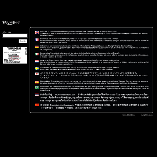 Мы рады Вам помочь и подготовили для Вас пошаговую инструкцию по установке любого оригинального тюнинга Triumph на соответтсвующий мотоцикл. Для получения инструкции пройдите по ссылке ниже на сайт triumphinstructions.com введите оригинальный артикул детали в окне поиска, нажмите кнопку "search" и Вы сможете скачать инструкцию по установке в pdf-формате.